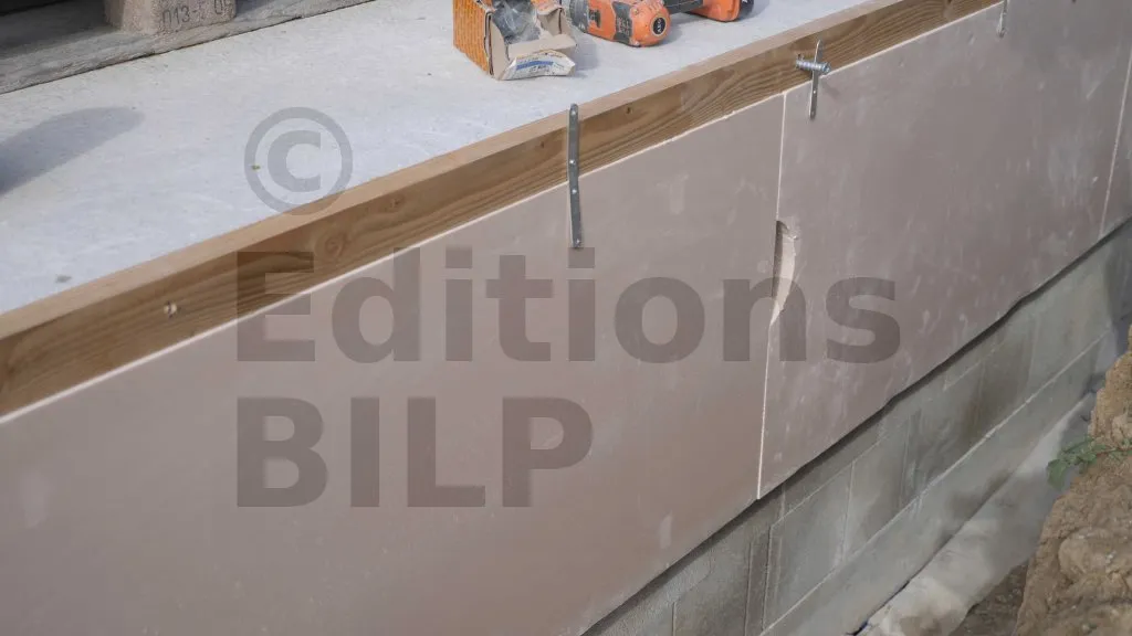 Les réservations se situent au niveau des sorties de ventilation du vide sanitaire. Elles ont déjà été réalisées sur le mur de soubassement ; il suffit donc de les reporter sur les plaques d’isolant.