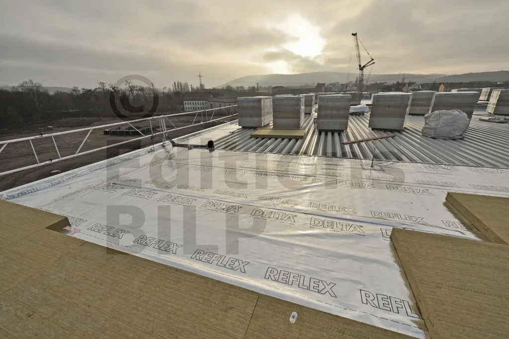 DELTA®-REFLEX est mis en œuvre sur la face chaude de la construction de manière continue en collant les recouvrements entre lés et les différents raccords latéraux ou sorties de conduits de ventilation.
