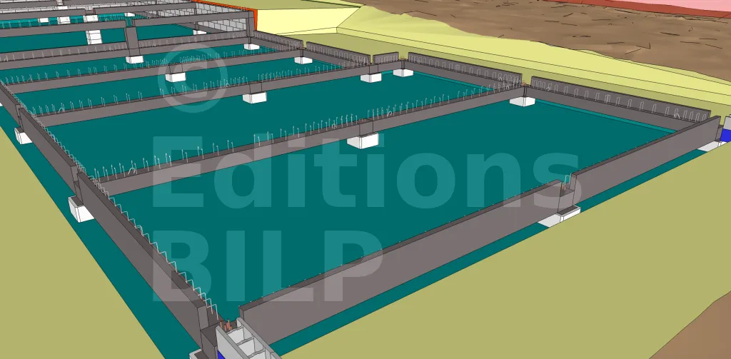 Le plancher reposera sur les longrines préfabriquées qui prennent appui sur les têtes de pieux.