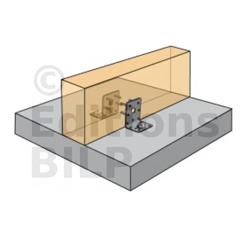 - Fixation bois/support rigide - type poutre/support rigideAile B : 8 - type : CNA Ø4.0x35 ou Ø4.0x50 mm ; Aile C : 1 - type : WA M10-78/5 - Assemblage avec 2 équerres