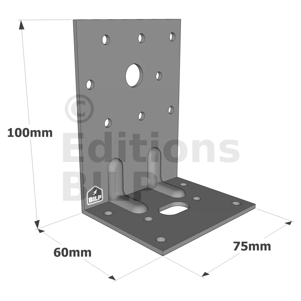 Équerres renforcées CLASSIQUES asymétriques pour le BOIS et le BETON - Réf. E4/2.5