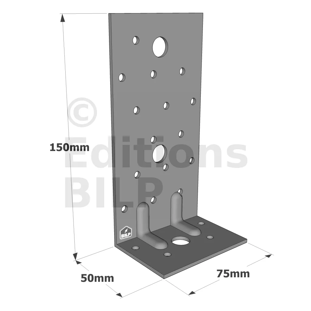 Équerres renforcées CLASSIQUES asymétriques pour le BOIS et le BETON - Réf. E17/2
