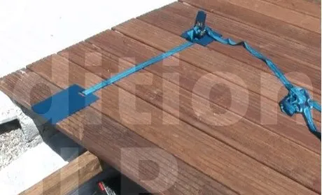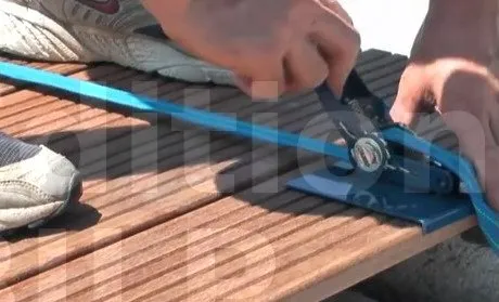 Facilite le montage des lames, permet de redresser des lames déformées. Bord coudé pour une tenue ferme, mécanisme à crémaillère de précision, bride indéformable de 5 m de long en polypropylène. Pression de serrage de 100 kg