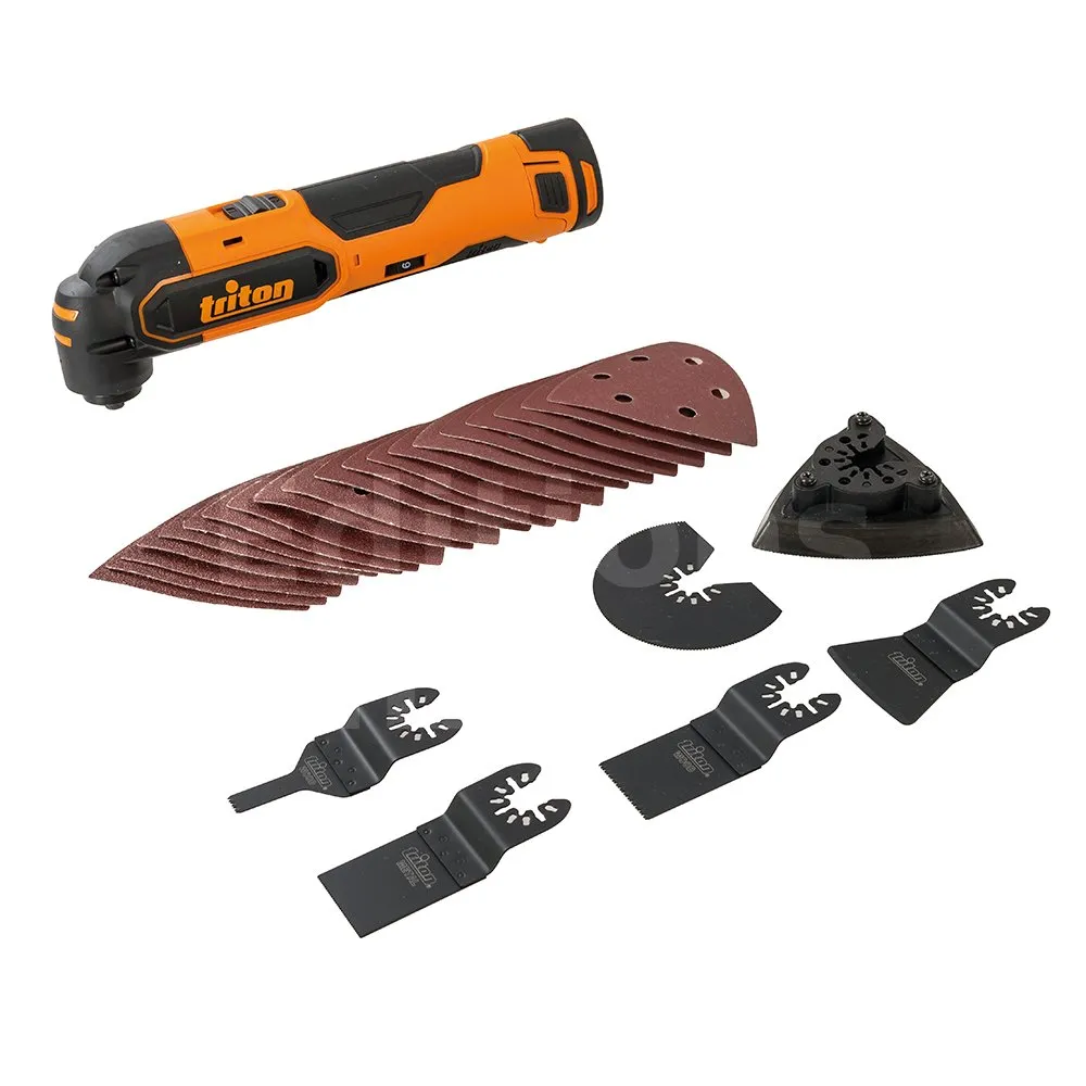 - ContenuOutil oscillant multifonction 12 V ; Lame pour coupes plongeantes (bois) ; Lame de scie segment (bois, plastique et métaux souples) ; Lame pour coupes plongeantes (bois et métal) ; Lame de scie segment (placoplâtre, bois, plastique et métal) ; Lame de grattoir ; Lame à gratter mastic et mortier ; Plateau-support auto-agrippant ; 5 x papiers abrasifs grain de 60 ; 5 x papiers abrasifs grain de 80 ; 5 x papiers abrasifs grain de 120 ; 5 x papiers abrasifs grain de 20 ; 2 x 1.5Ah Li-ion batteries ; 1 x Chargeur