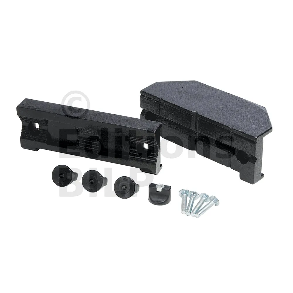 1 x mordache avant ; 1 x mordache arrière ; 4 x boulons de blocage ; 4 x boulons de montage