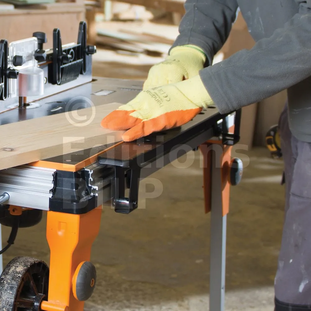 Équerre de support latéral avec tubes chromés pour prévenir la corrosion. Longueur réglable pour soutenir les pièces de plus grandes dimensions. Pratique lors de la manipulation de projets volumineux. S’allonge jusqu’à 600 mm (au maximum en partant du centre de la table).