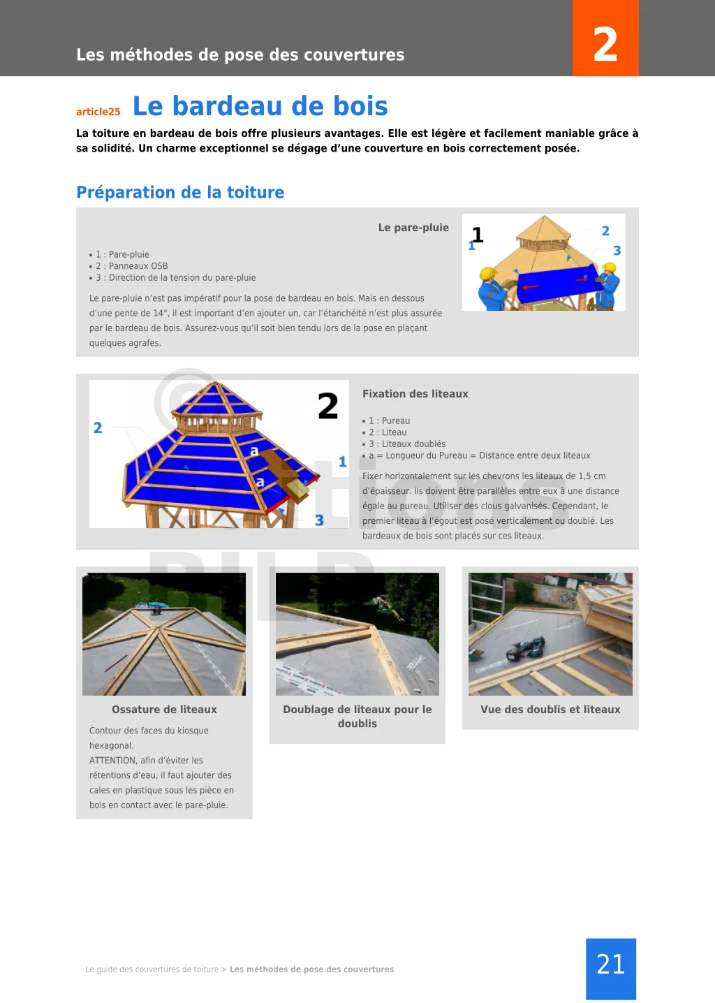 Des informations concrètes pour votre projet. Tous les secrets, tous les trucs et les astuces pour réussir la pose de votre des couvertures de votre toiture. Toutes les techniques, tous les types de couvertures vous sont décrits de façon objective et indépendante. Des vues détaillées vous décrivent toutes les étapes de la pose.