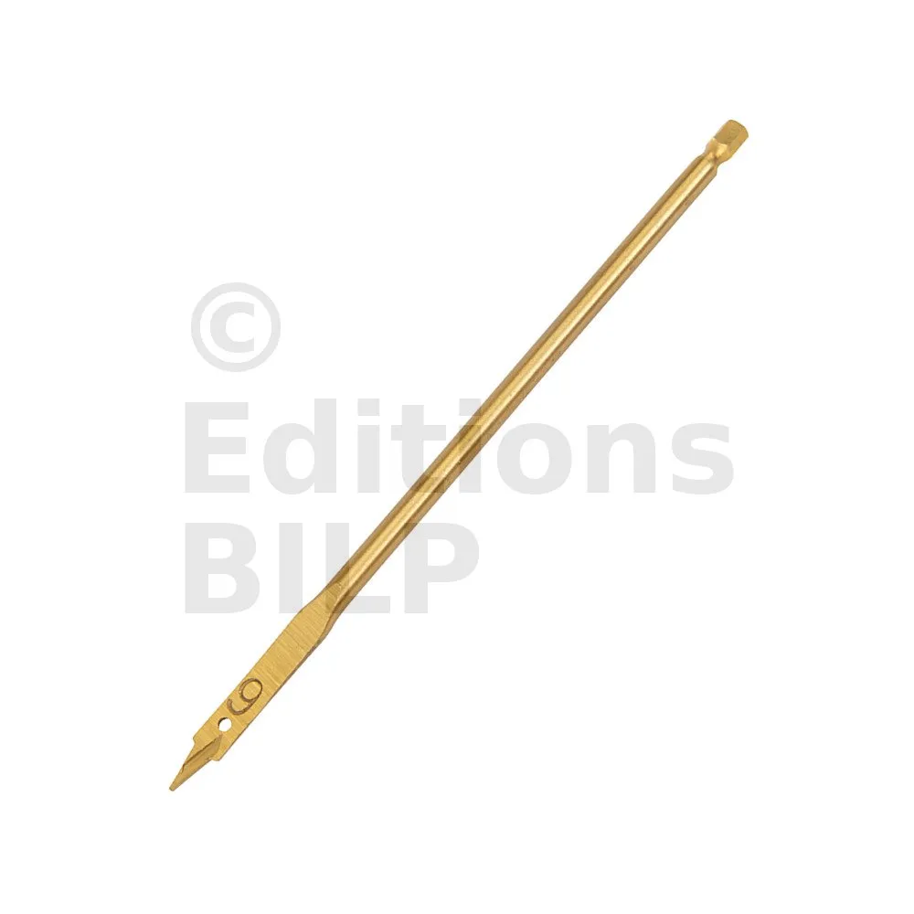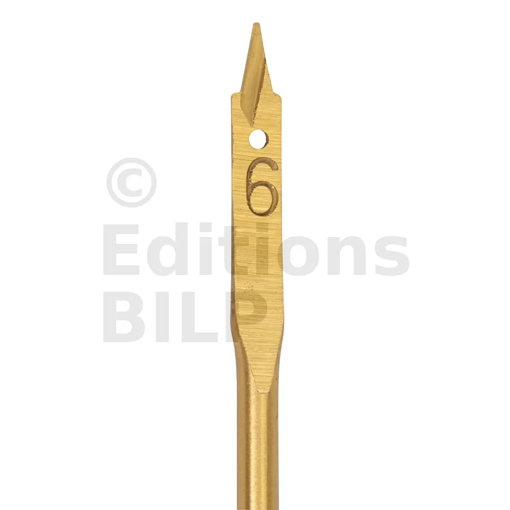 Mèche en acier carbone titanée. Tête de coupe biseautée à trois pointes permettant de réaliser une coupe nette et de réduire les projections. Renforcée en titane pour une durée de vie étendue. Queue 6 pans. Pour le perçage rapide et précis des bois tendres, semi-durs, panneaux de particules, plaques de plâtre, matières plastiques et fibres de verre.