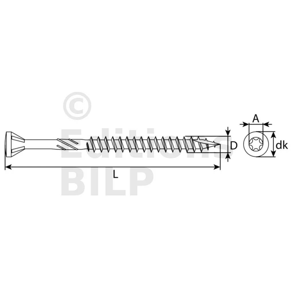 Vis pour lames de terrasse bois, tête fraisée autofraisante, inox A2