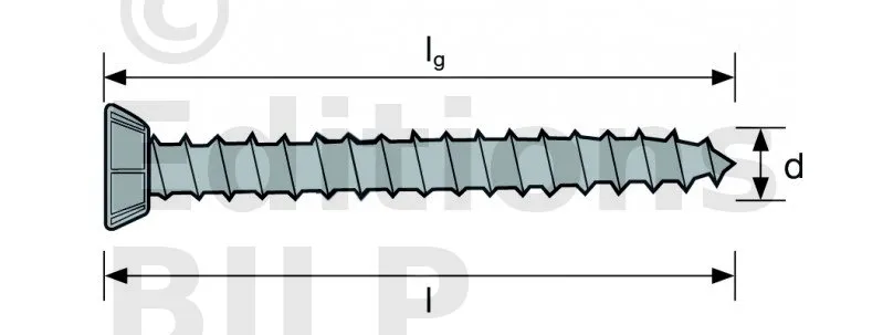 Vis béton à tête LARGE pour fixation de structure métal/PVC