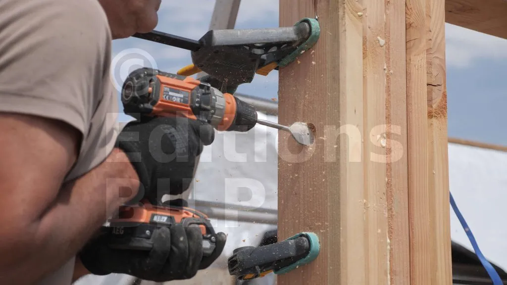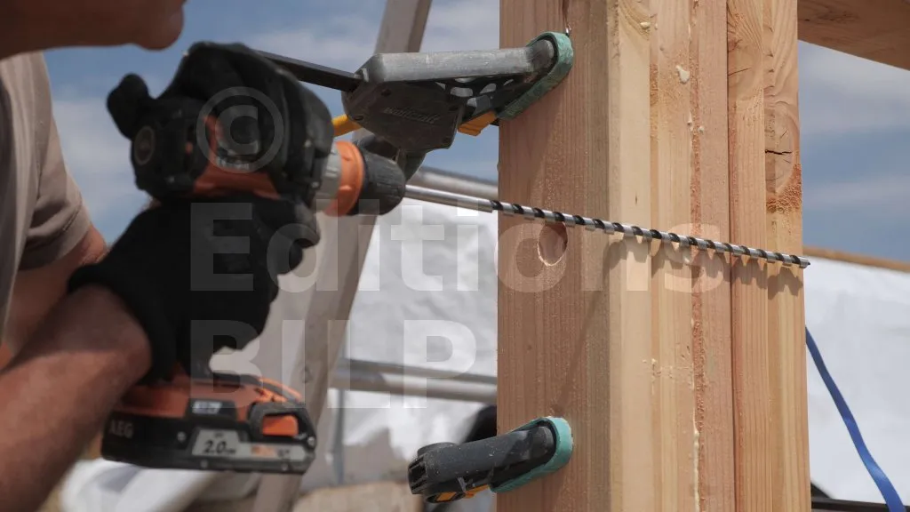 La mèche étant plus courte que les épaisseurs des éléments d’ossature, il sera réalisé sur les deux côtés.