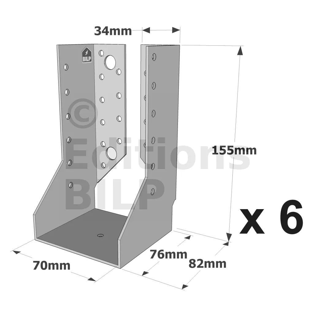 - Robustesse et discrétion : Grâce à leur conception en acier galvanisé, ces sabots sont robustes et résistent aux conditions climatiques difficiles. Les ailes intérieures permettent une intégration discrète, préservant l’esthétique de la structure.