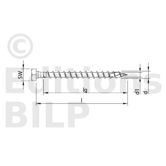Vis BOIS de renforcement - tête hexagonale combinée (empreinte : tête hexagonale + T-DRIVE)