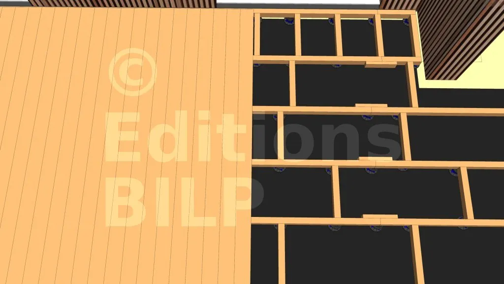 - Base et ossature : Les lambourdes sont droites, ventilées dessous, et espacées selon les règles du fabricant.