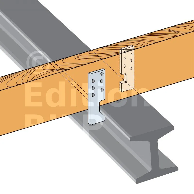 L‘ancrage IPN permet la fixation de solive bois sur poutre en I métallique de type IPN. Cette fixation est assurée par encoches.