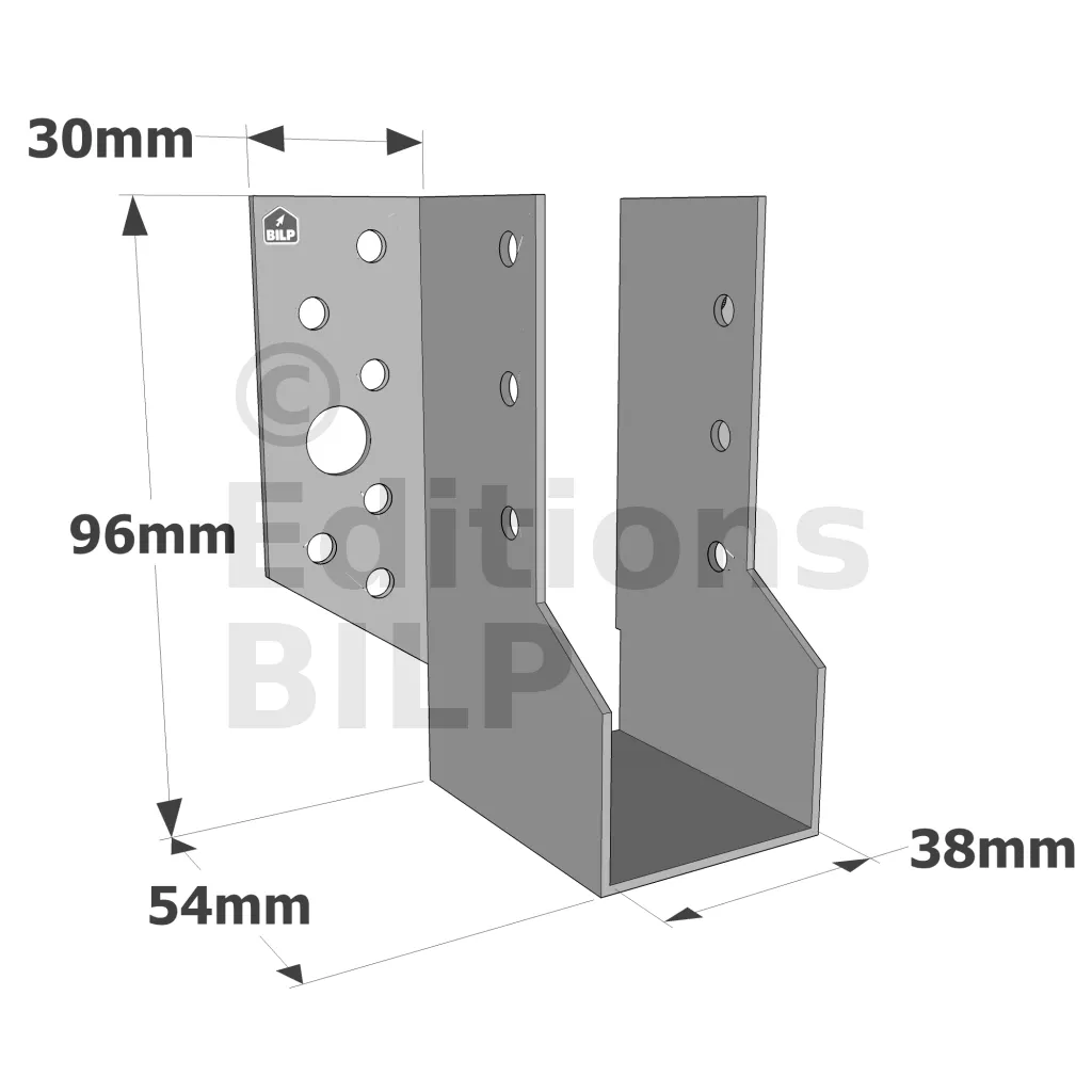 Sabots à ailes extérieures, gamme SBE ECONOMIQUE (épaisseur 1,5mm, profondeur 55mm) - Réf. SBE38/96