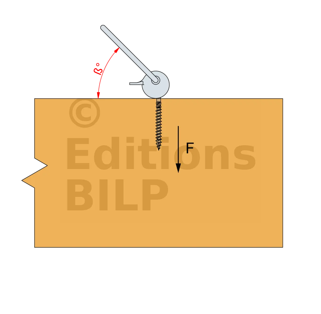 - Vis SSH installée perpendiculairement à la fibre du bois et sollicitée avec un angle,
