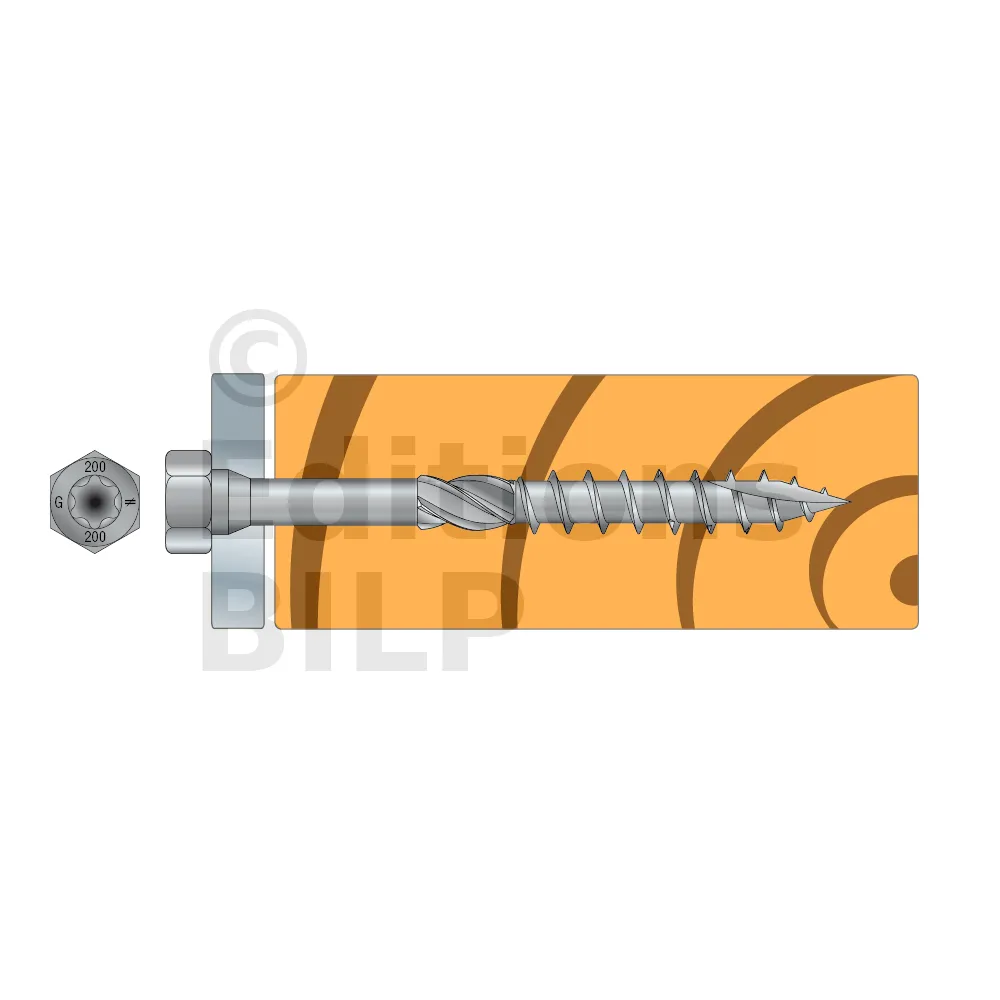 La vis bois SSH est une vis de diamètre et longueur idéale pour la fixation de connecteurs sur éléments en bois, en intérieur ou extérieur. Elle s’installe dans les perçages habituellement prévus pour les ancrages, et réduit avantageusement le temps de Mise en œuvre sur chantier, en comparaison des solutions classiques de clouage.