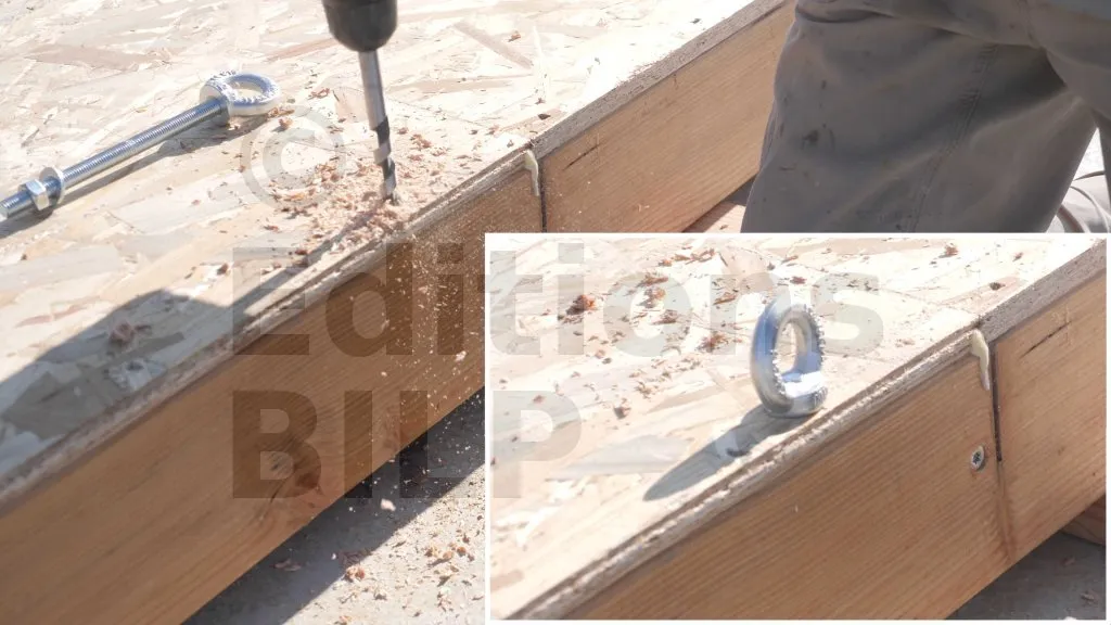 Les vis SSH Ø12 mm sont compatibles avec les crochets dédiés au levage et au transport d’éléments bois (ossatures bois, murs CLT, planchers CLT, poutres...).