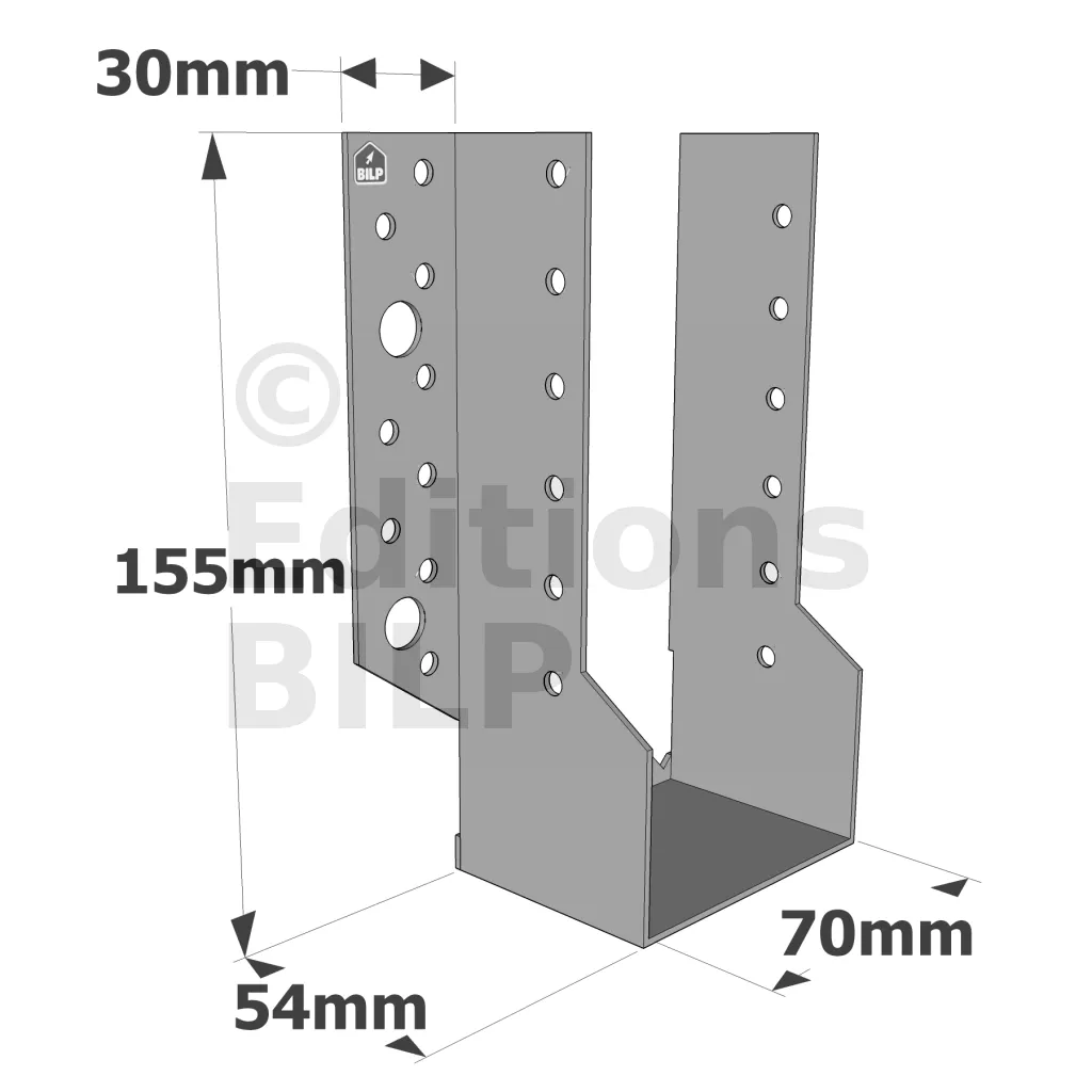 Les sabots de charpente SBE sont parfaits pour l’assemblage des poutres et des chevrons dans les structures de charpente. Ils assurent une fixation robuste et durable, essentielle pour la stabilité de la couverture et de la toiture. - Ossature bois