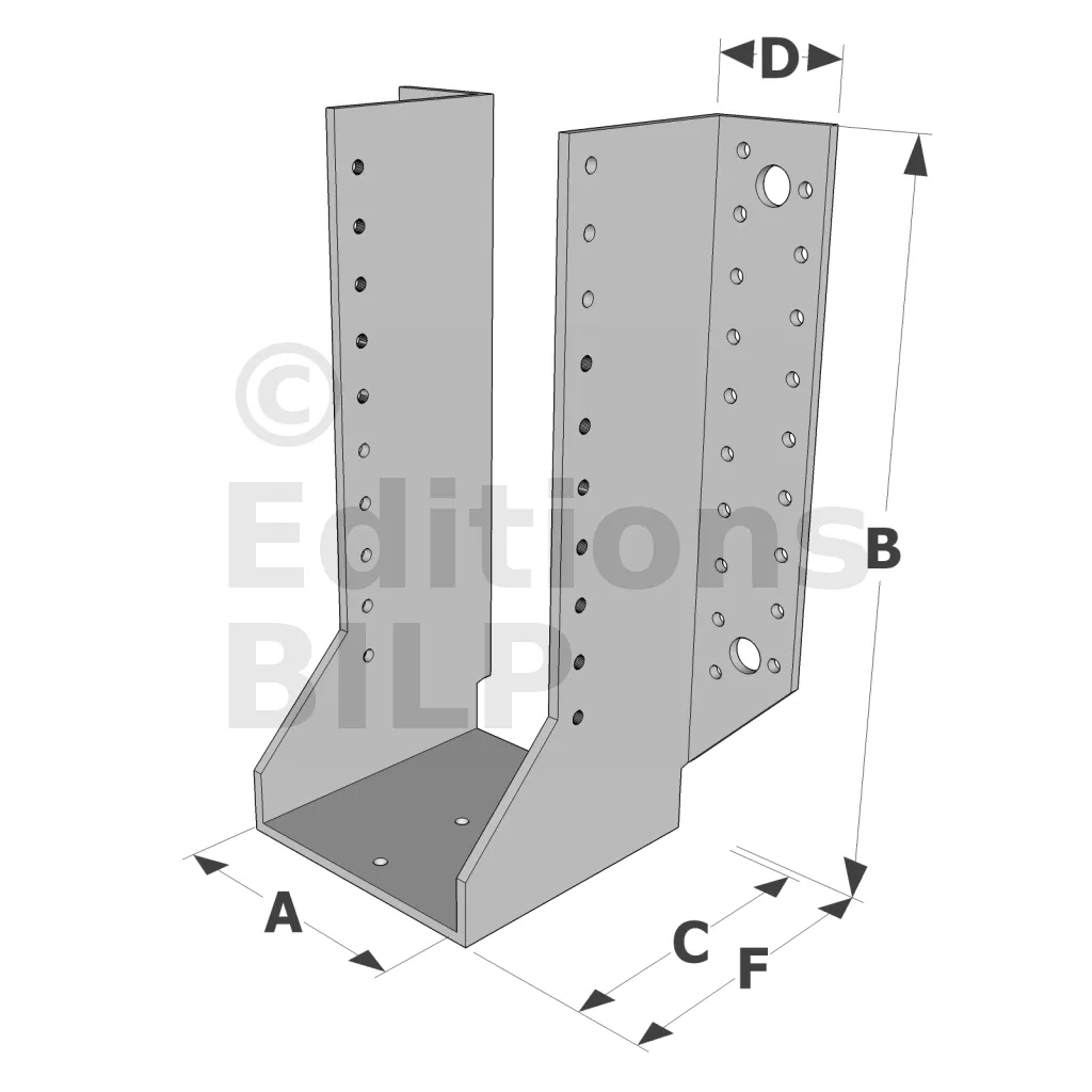 Les sabots GSE en acier galvanisé offrent une flexibilité grâce à des largeurs au choix selon les plages indiquées. Cette caractéristique permet de s’adapter parfaitement aux dimensions spécifiques des éléments de construction, garantissant une compatibilité optimale et une fixation stable.