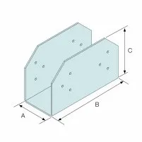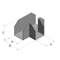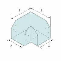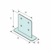 La résistance caractéristique total de la platine est donnée ci-dessus. Si deux éléments bois sont connectés avec une surface d’appui égale, alors la charge appliquée sur chaque élément ne doit pas excéder la moitié de la résistance totale. Si l’un des deux éléments connectés ne repose que sur une aile en porte à faux de la platine, alors la charge appliquée sur cet élément ne doit pas excéder 0.3 fois la résistance totale, la charge appliquée sur l’autre élément reposant sur le reste de la platine ne doit pas excéder 0.7 fois la résistance totale.