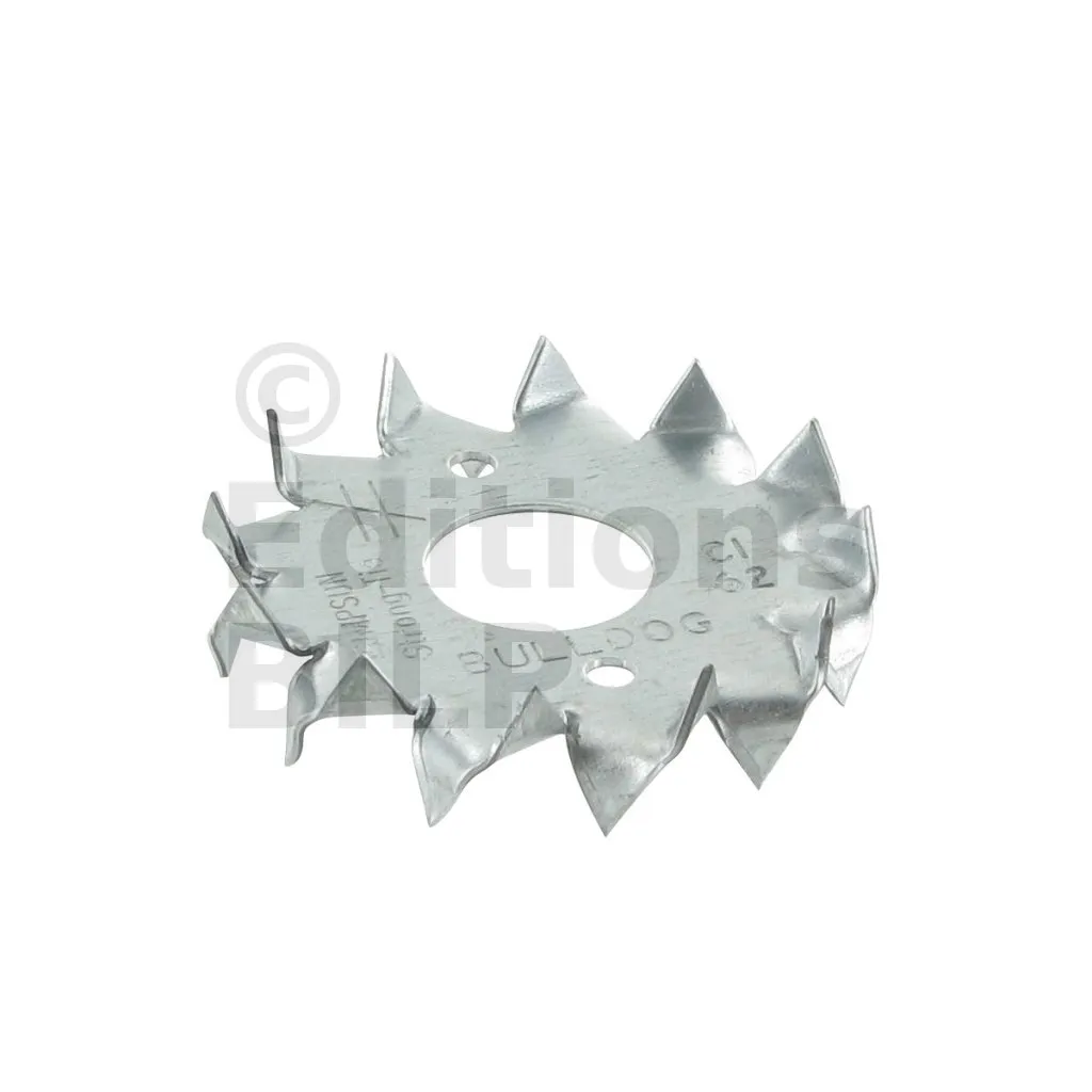 Les crampons Bulldog double denture entrent dans la réalisation d‘assemblages boulonnés. Ils permettent d‘augmenter la capacité de reprise de charge des assemblages.