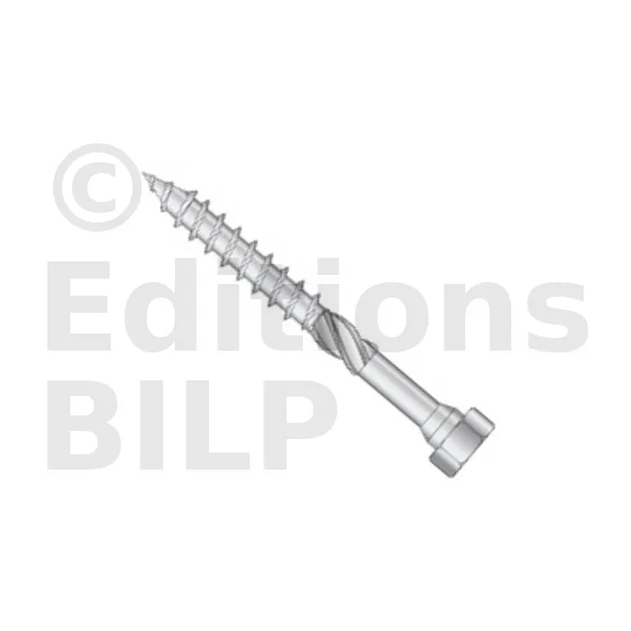- Une vis dont l’axe est de 45 à 90° du fil du bois dans le cas des ESCR(XXX), et à 90° du fil du bois pour les autres vis.