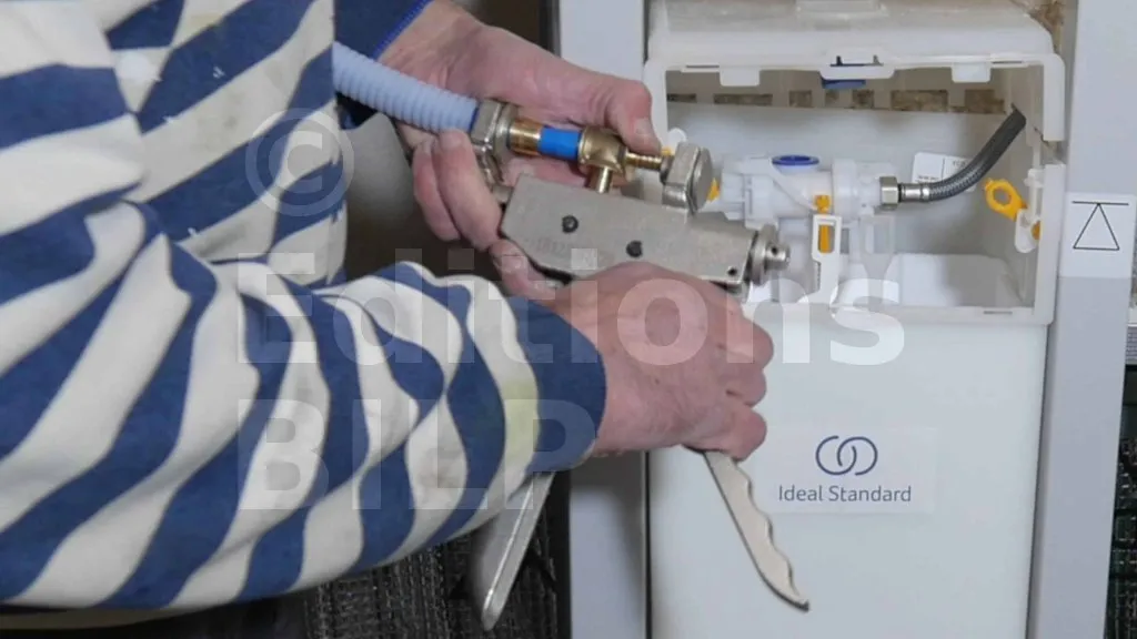 Pour raccorder le réservoir encastré et la douchette, nous avons d’abord fermé l’arrivée d’eau afin de travailler en toute sécurité. Ensuite, nous avons mesuré et ajusté la longueur du tuyau PER en fonction de la distance entre la source d’eau et le réservoir. Pour assurer une distribution efficace, nous avons utilisé un raccord en T permettant de diviser l’arrivée d’eau en deux circuits distincts : l’un destiné à l’alimentation du réservoir encastré et l’autre à la douchette hygiénique. Afin d’assurer un raccordement fiable et étanche, nous avons glissé une bague de serrage sur le tuyau avant de l’assembleur au raccord en T à l’aide d’une pince à glissement, garantissant ainsi une fixation solide et durable. Enfin, nous avons vérifié la bonne fixation des connexions avant de rouvrir l’arrivée d’eau et tester l’ensemble du système pour s’assurer de l’absence de fuite et du bon fonctionnement de chaque élément.
