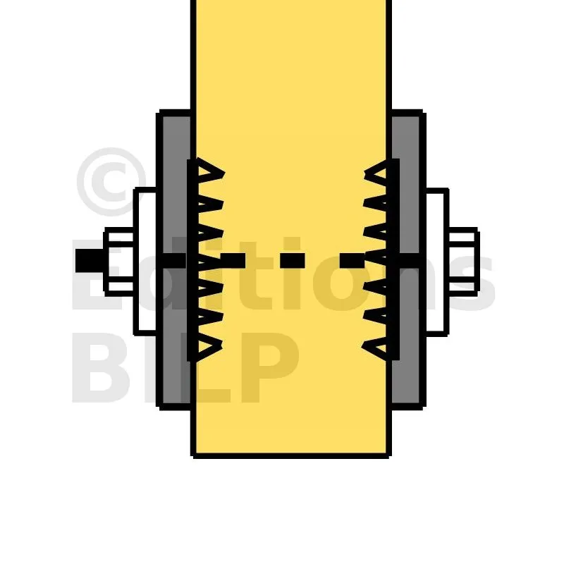 - Le montage des crampons se fait avec une presse hydraulique ou à l’aide d’une cale en bois dur et d’une masse,