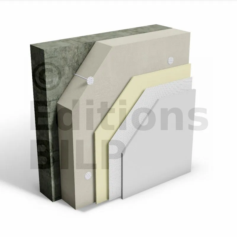 - Isolation par enduit sur isolant (ETICS-External Thermal Insulation Composit System).