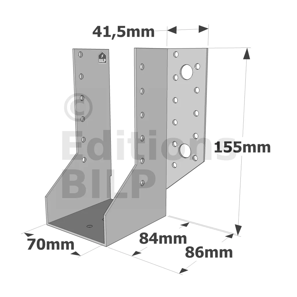 - Robustesse et épaisseur : Fabriqués en acier galvanisé, ces sabots à ailes extérieures classiques sont extrêmement résistants à la corrosion et offrent une épaisseur adaptée pour supporter des charges lourdes.