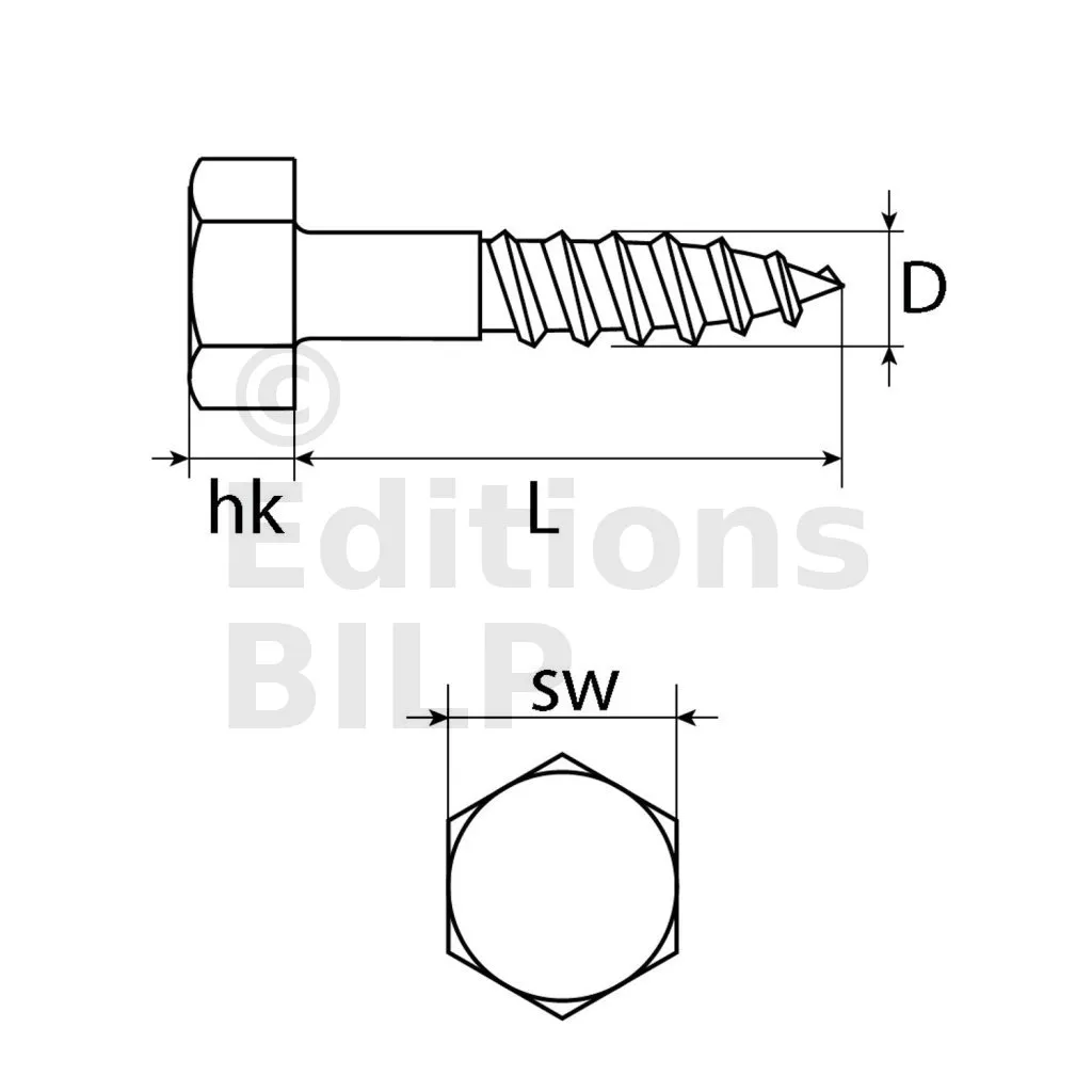- Normes similaires : La norme ISO correspondante est ISO 885 pour les vis à bois avec tête hexagonale.