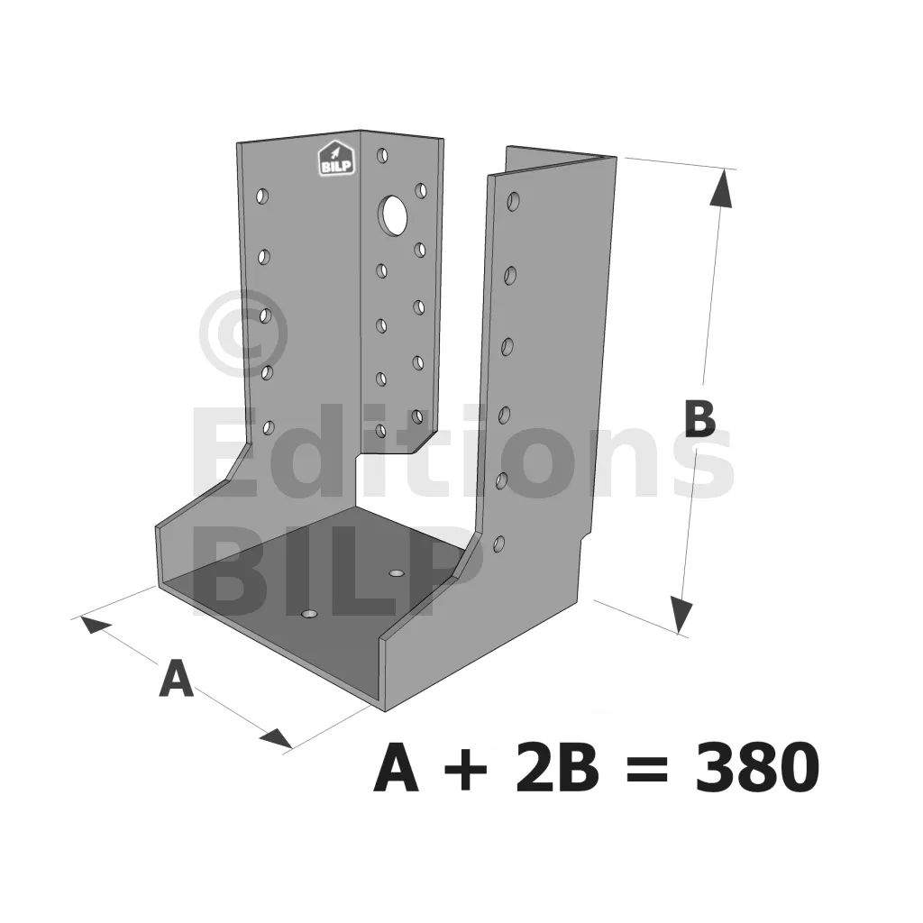 Grands sabots à ailes intérieures, gamme GLI ECONOMIQUE (développé 380mm, épaisseur 2.5mm, profondeur 90mm) - Réf. GLI380/2.5X
