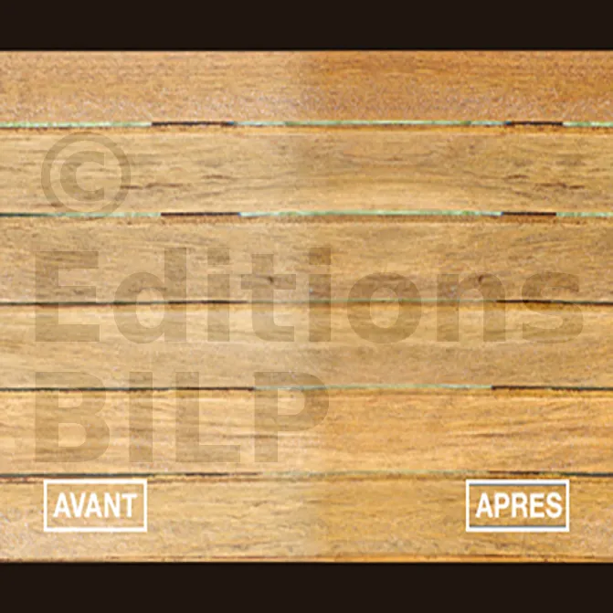 - Filtre et barrière anti-UV -> Conserve la teinte naturelle du bois.