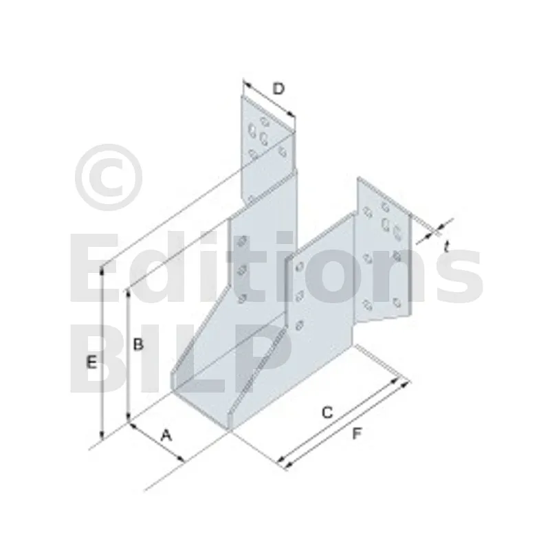 Sabot à bretelles pour fermette, hauteur (B) : 90 mm, largeur (A) : 38 mm, - Réf. SHT115/38