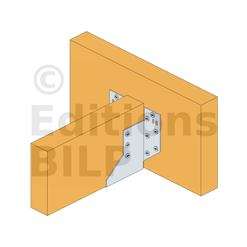 L’étrier SHT est un sabot à bretelles utilisé pour la connexion de fermettes sur support bois. Il est ajustable en hauteur sur chantier car il peut être installé les ailes à plat sur le porteur ou les ailes repliées.