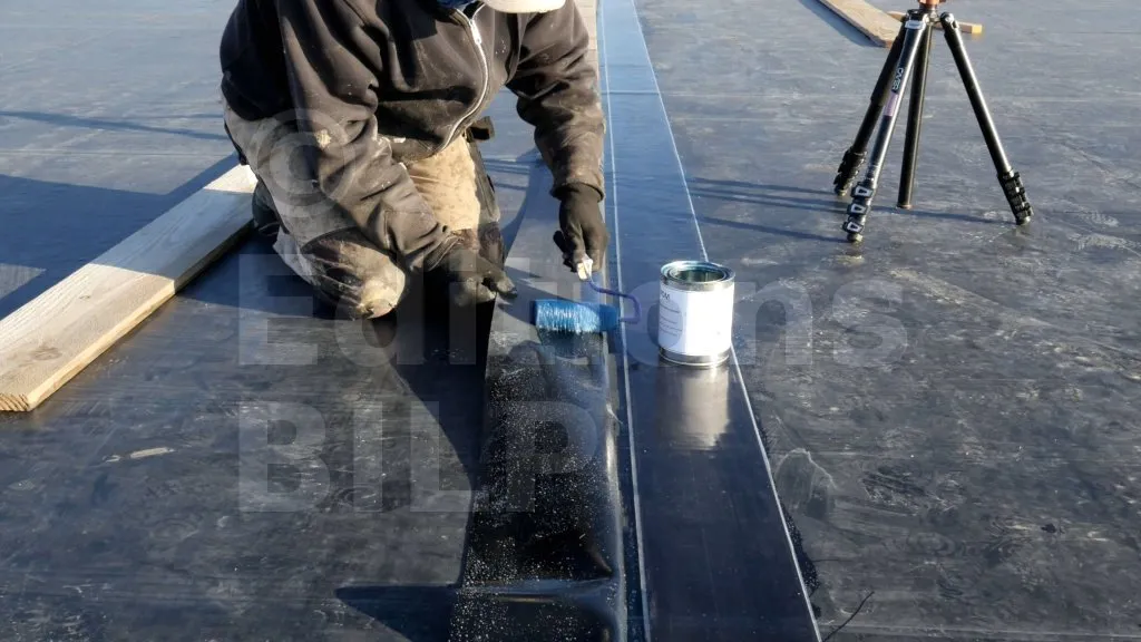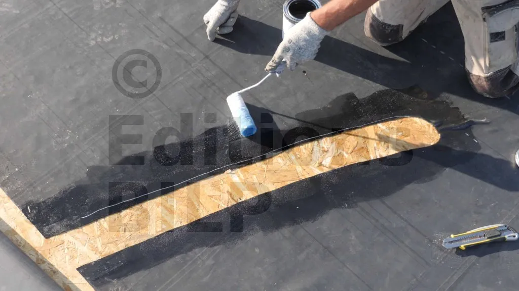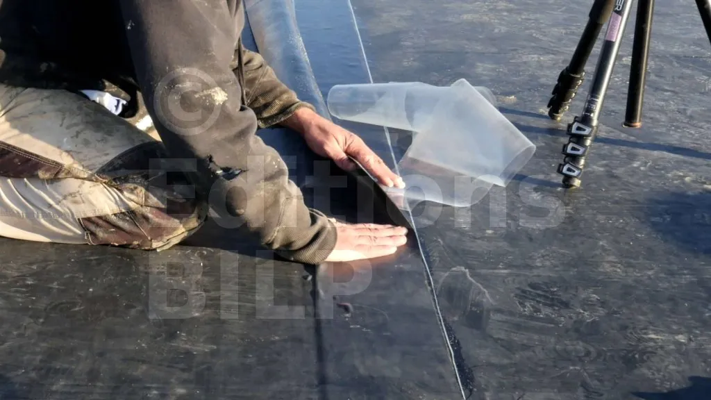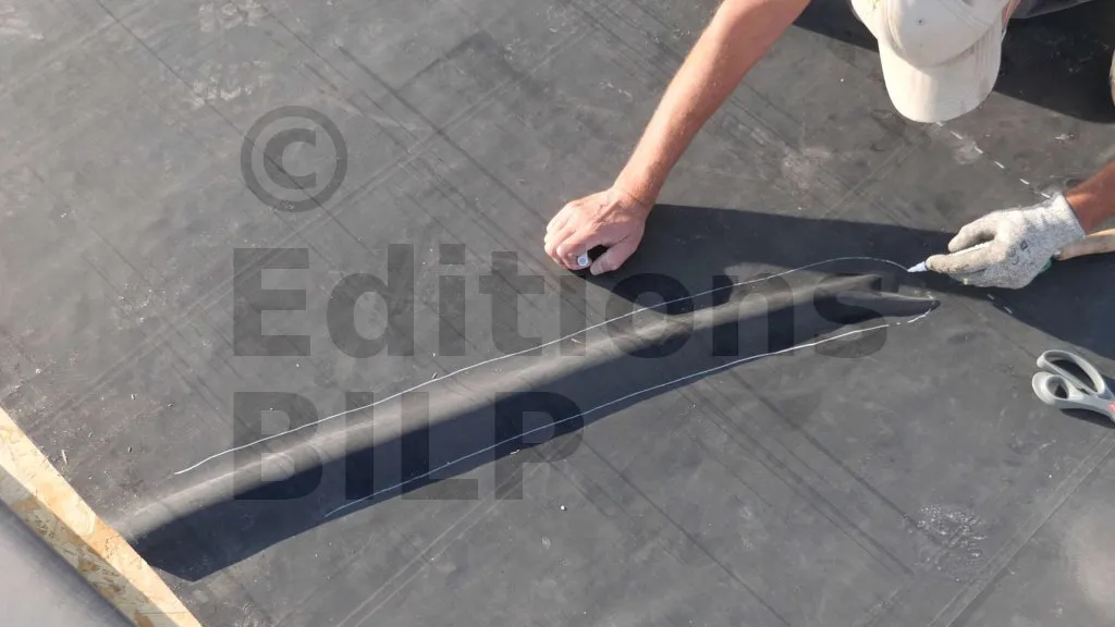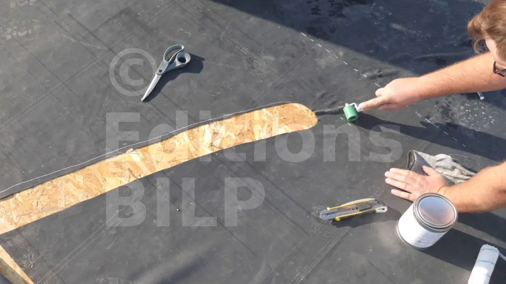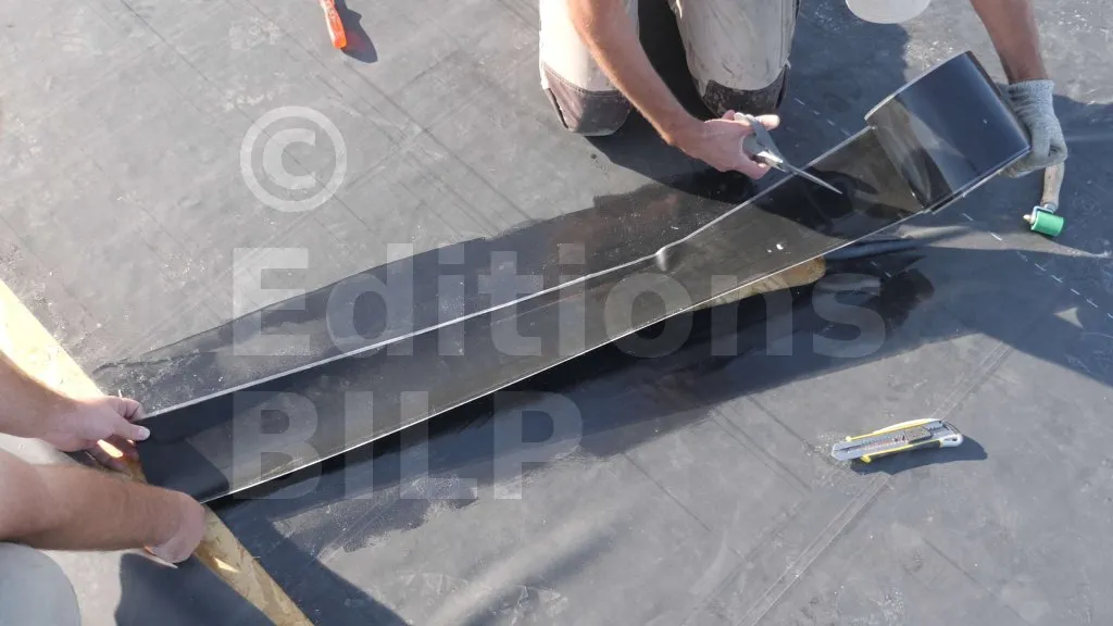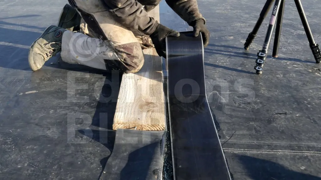Il est possible que le recouvrement entre les deux lés soit très important, c’est-à-dire que la largeur de la superposition dépasse celle de la bande adhésive en EPDM. C’est notre cas ici.