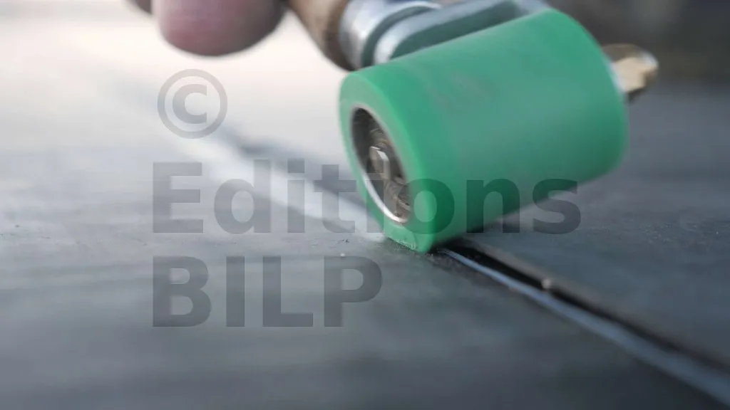 La bande doit toujours être positionnée sur l’extrémité de la jointure, ce qui nécessite un traçage précis de son alignement.