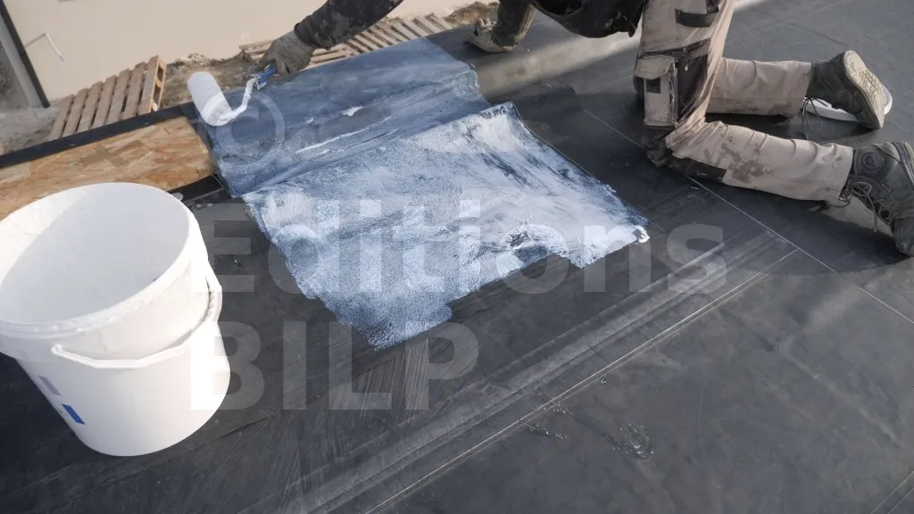 La zone concernée par cet encollage correspond à la zone de recouvrement où il n’y a pas de bande adhésive flashing.