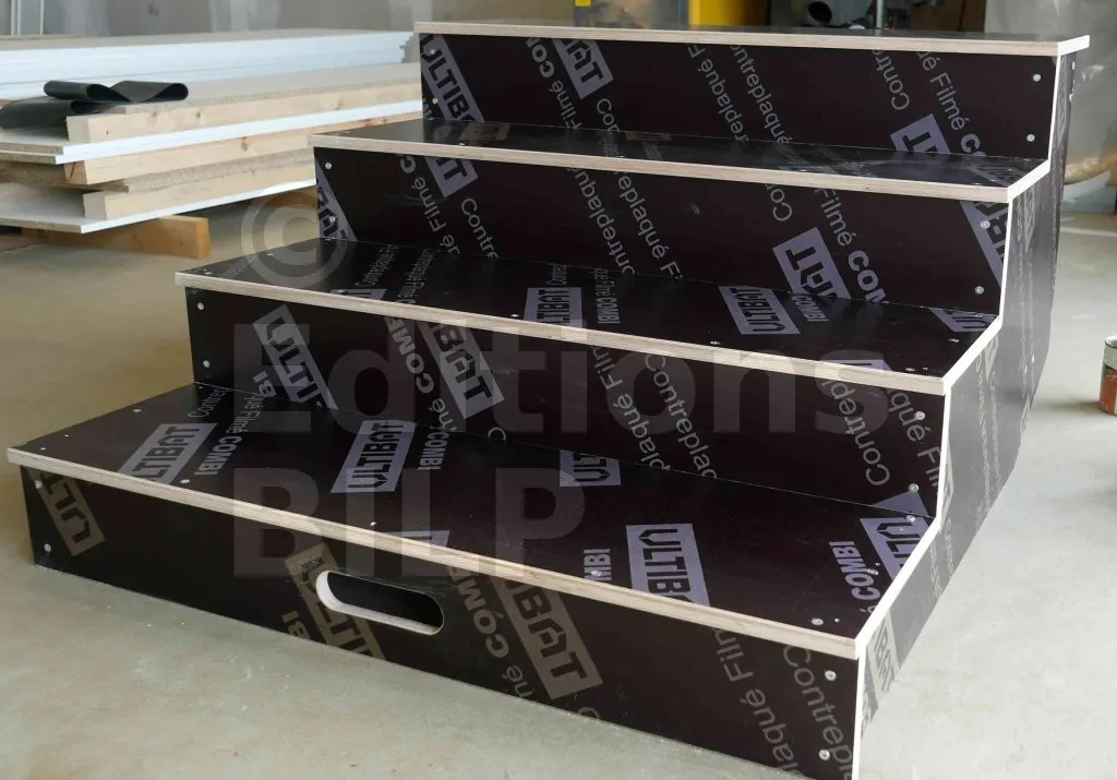 Avec une perceuse, percez des trous dans le sol et le mur (contre le plancher supérieur dans notre cas). Assurez-vous de choisir des chevilles et des vis adaptées au type de mur (brique, béton, etc.). Le châssis doit être solidement ancré.