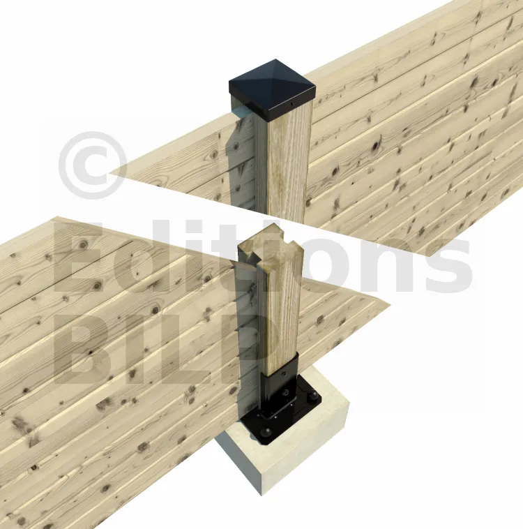 - Pied de poteau ouvert entièrement sur le côté afin de poser la première lame de clôture au plus près du sol.