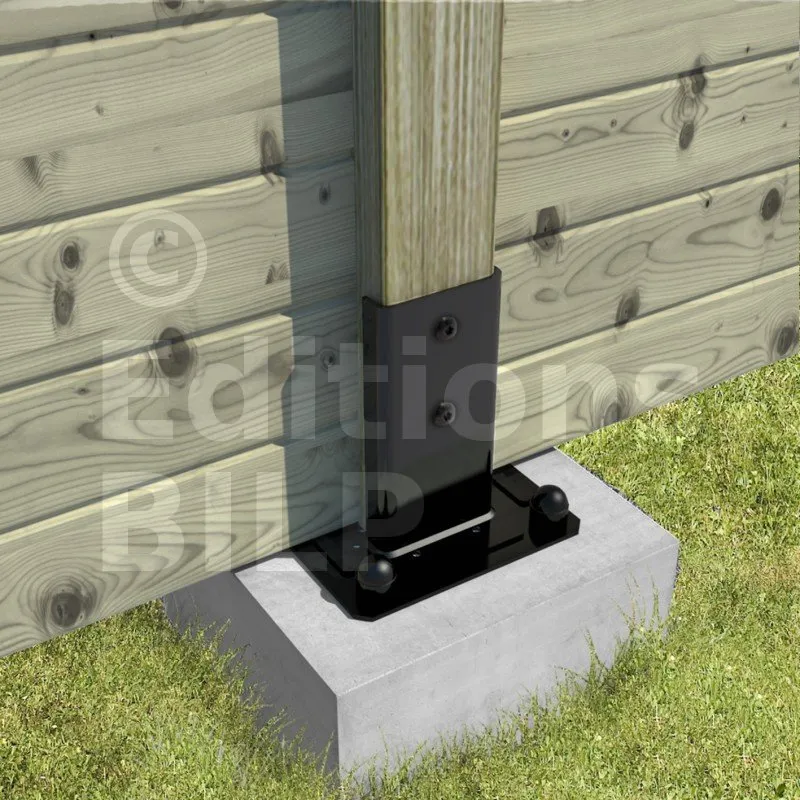 Pied de poteau carré de jardin à boulonner - Finition noire