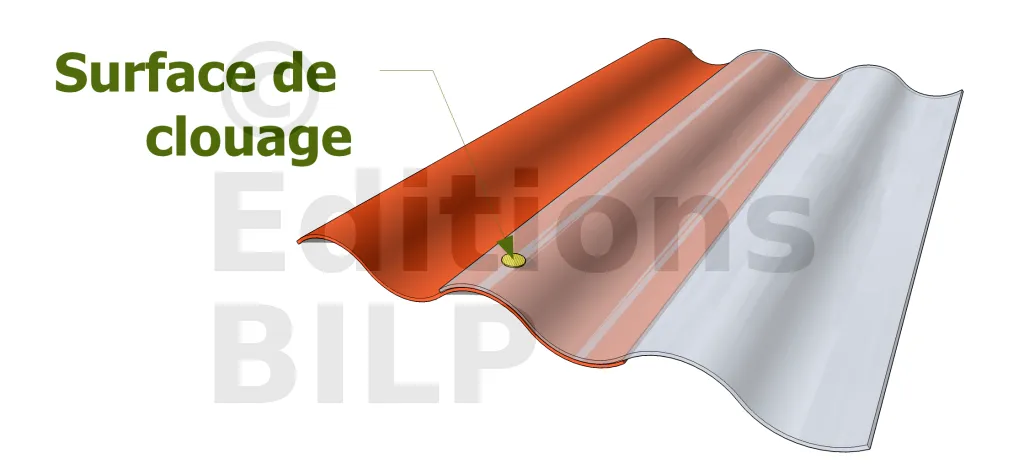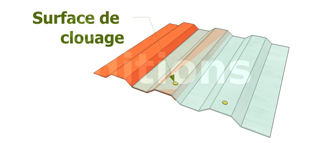 Installez le second panneau à coté du premier. Superposez-les sur la dernière partie ondulée. Fixer temporairement d’abord tous les panneaux, et après alignement, clouez définitivement au niveau des ondulations.