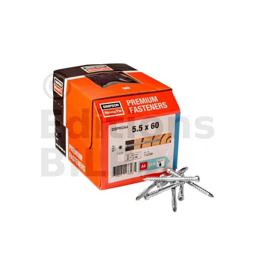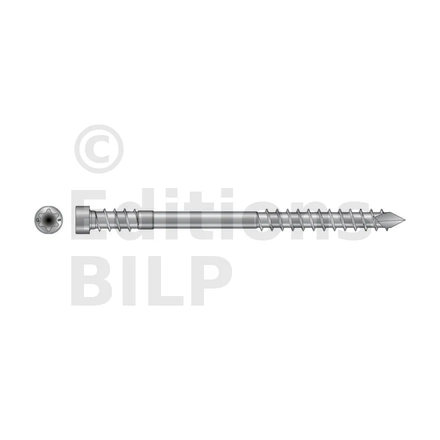 La vis pour terrasse bois durs DSPRO A4 est préconisée pour pour la réalisation de terrasses et assemblages en bois exotique dur.