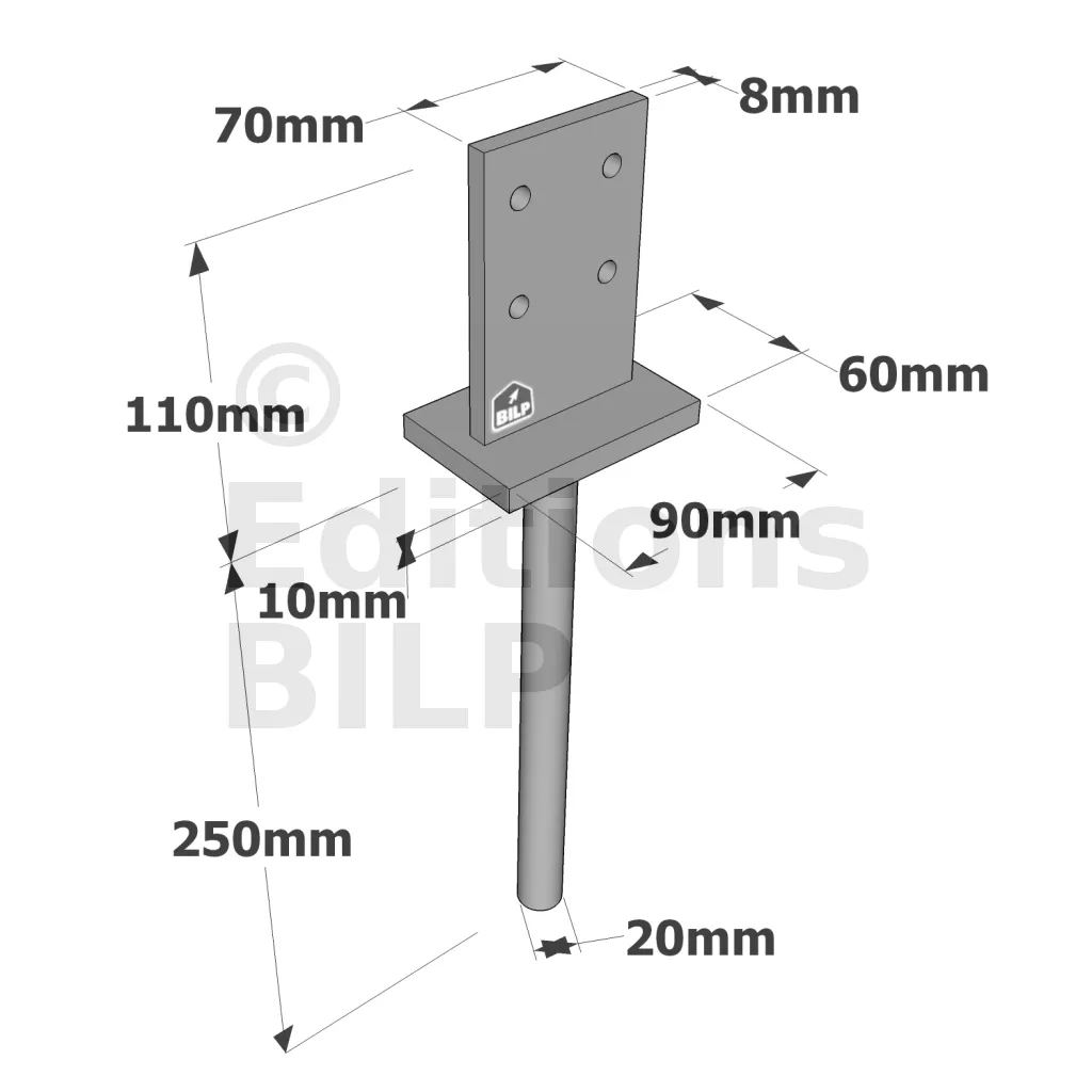 Le PIG est utilisé pour ancrer et protéger les poteaux du pourrissement. Il doit être scellé dans le béton.