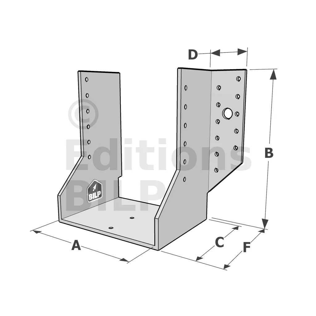 Les sabots GSE en acier galvanisé offrent une flexibilité grâce à des largeurs au choix selon les plages indiquées. Cette caractéristique permet de s’adapter parfaitement aux dimensions spécifiques des éléments de construction, garantissant une compatibilité optimale et une fixation stable.