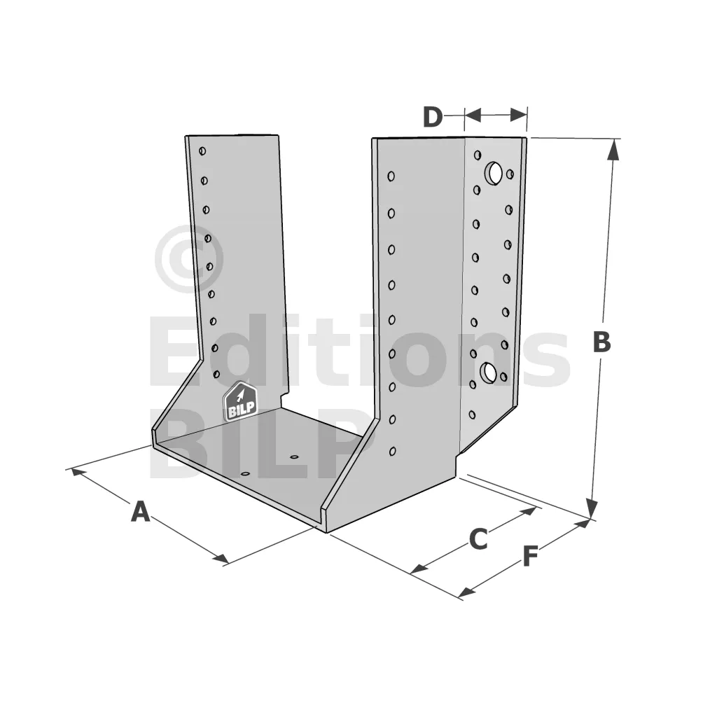 Les sabots GSE en acier galvanisé offrent une flexibilité grâce à des largeurs au choix selon les plages indiquées. Cette caractéristique permet de s’adapter parfaitement aux dimensions spécifiques des éléments de construction, garantissant une compatibilité optimale et une fixation stable.