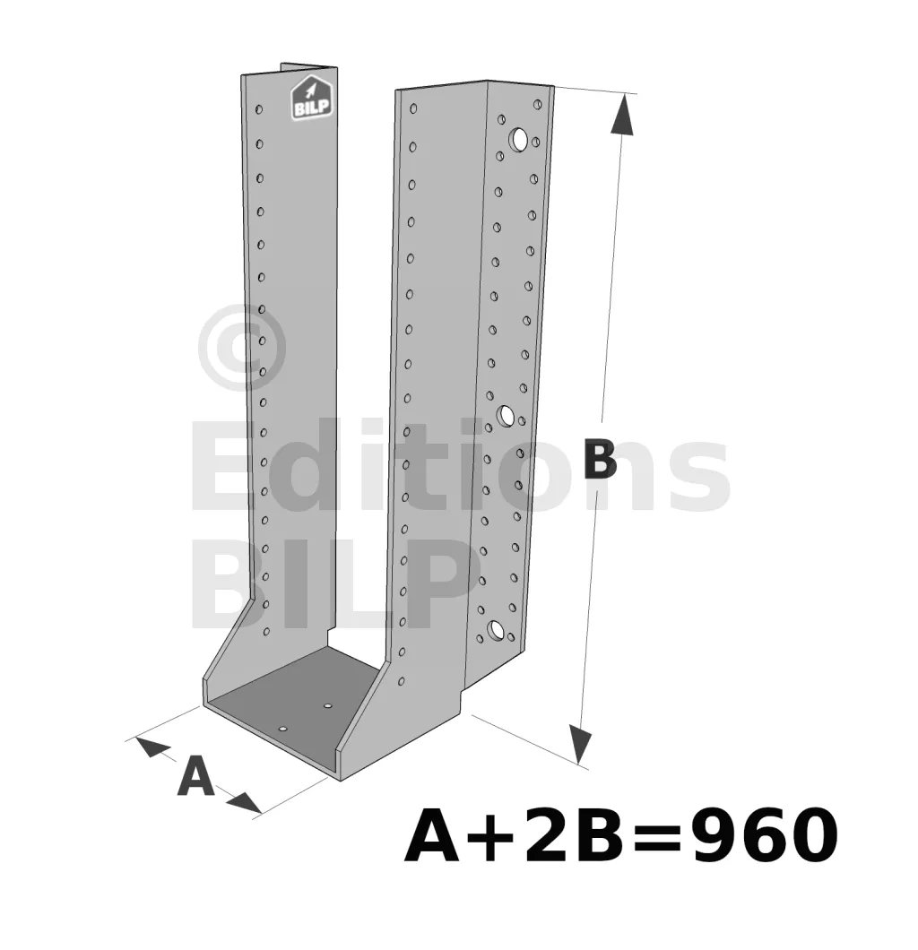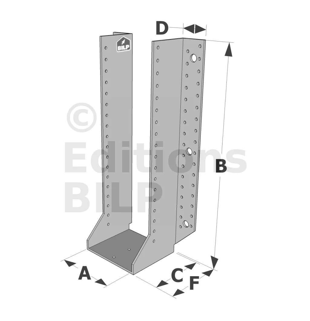 Les sabots GSE en acier galvanisé offrent une flexibilité grâce à des largeurs au choix selon les plages indiquées. Cette caractéristique permet de s’adapter parfaitement aux dimensions spécifiques des éléments de construction, garantissant une compatibilité optimale et une fixation stable.