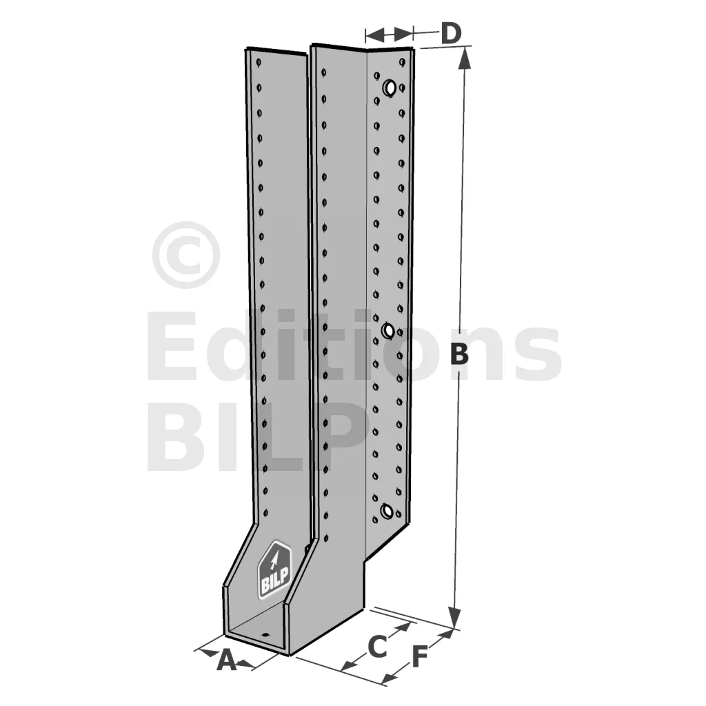 Les sabots GSE en acier galvanisé offrent une flexibilité grâce à des largeurs au choix selon les plages indiquées. Cette caractéristique permet de s’adapter parfaitement aux dimensions spécifiques des éléments de construction, garantissant une compatibilité optimale et une fixation stable.